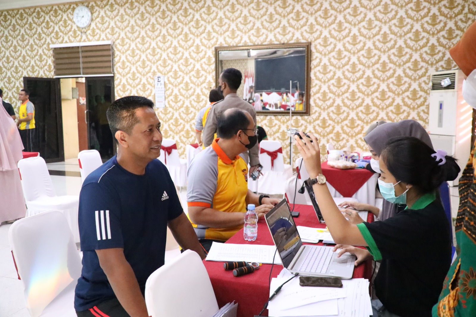 Kabiddokkes Polda Banten Kombes Pol dr. Agung Widodo menyampaikan pelaksanaan pemeriksaan kesehatan berkala sebagai deteksi dini terhadap kelainan dan pemantauan kondisi kesehatan personil dalam penilaian 13 komponen Polri. “Pemeriksaan kesehatan dilakukan secara menyeluruh meliputi pengecekan tensi, pemeriksaan gigi, tes mata, tes urine, tes darah, rekam jantung, pemeriksaan Rontgen, serta tes kesehatan jiwa,” ujarnya.